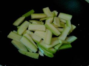 4. 加入小瓜条翻炒至断生。